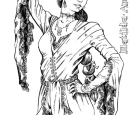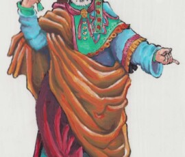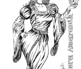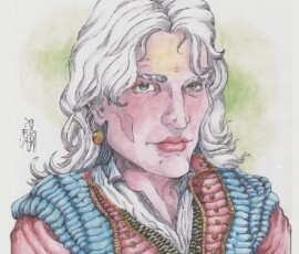 Medi Changeling. 11” x 17” Line & Wash, Pen & Ink with Watercolor on Watercolor Paper, 2025, by Scott A. Story