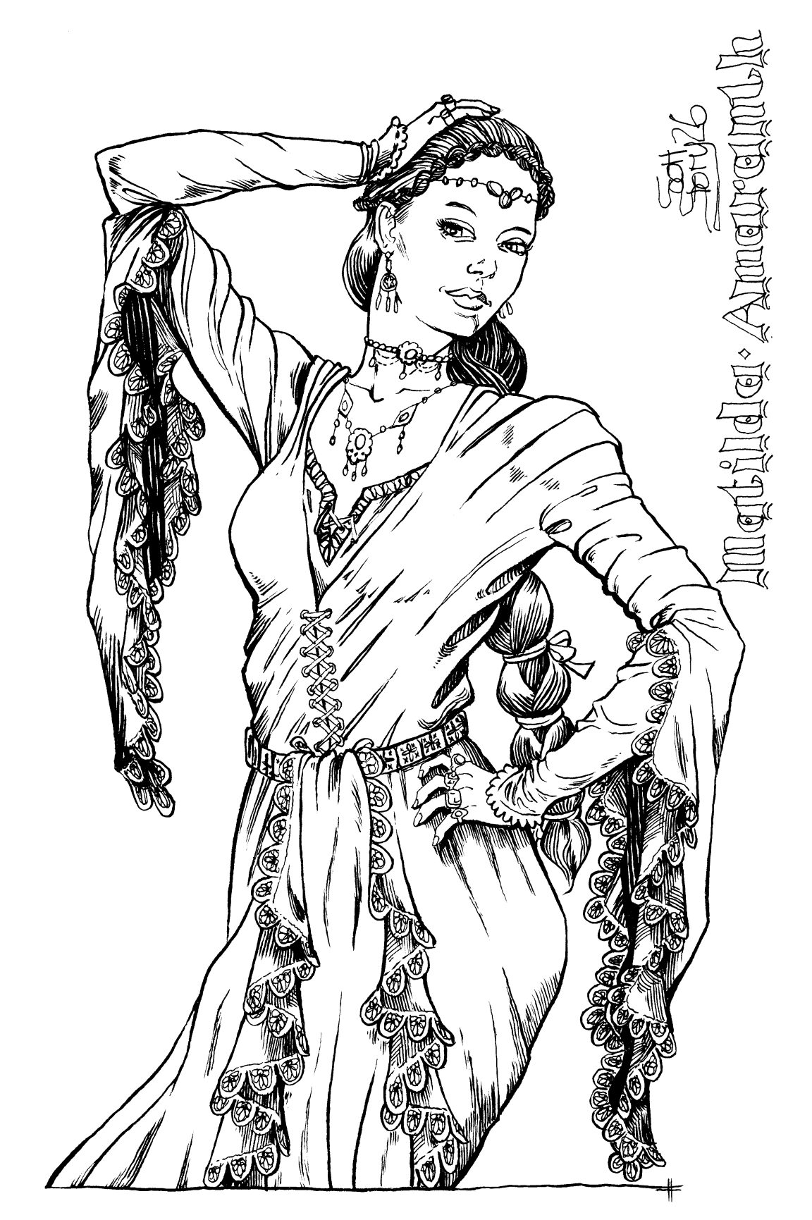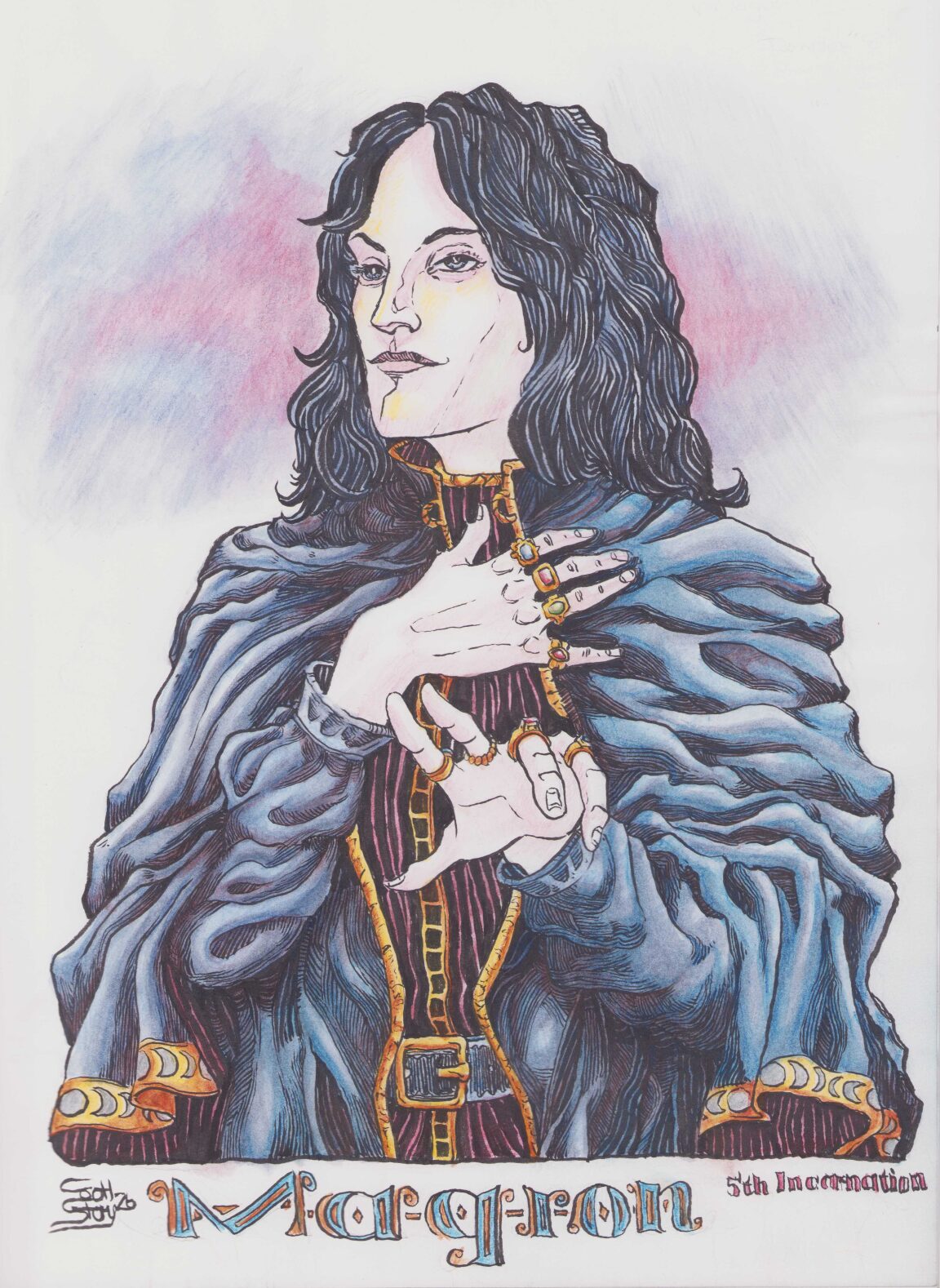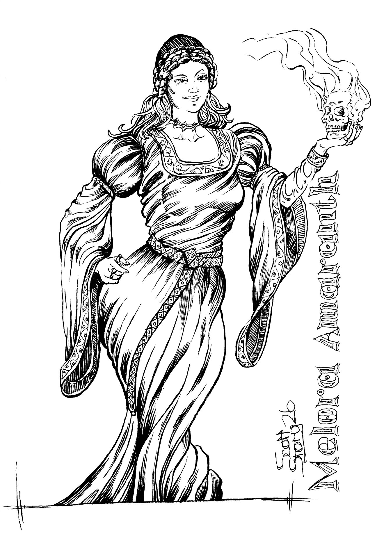 Medi Changeling. 11” x 17” Line & Wash, Pen & Ink with Watercolor on Watercolor Paper, 2025, by Scott A. Story
