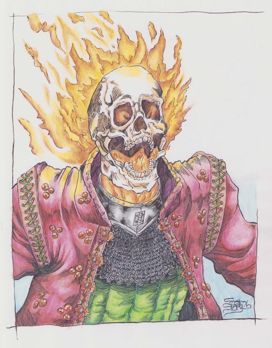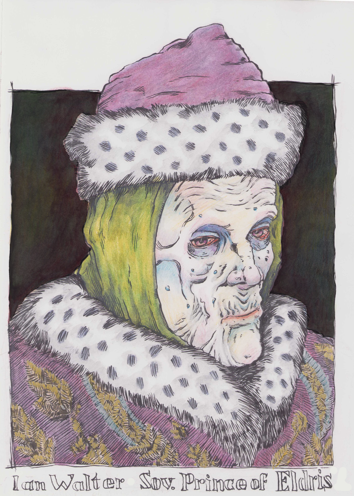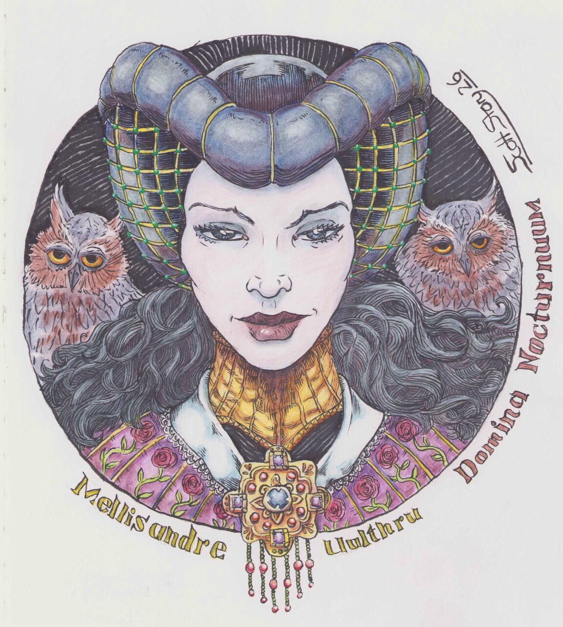 Medi Changeling. 11” x 17” Line & Wash, Pen & Ink with Watercolor on Watercolor Paper, 2025, by Scott A. Story